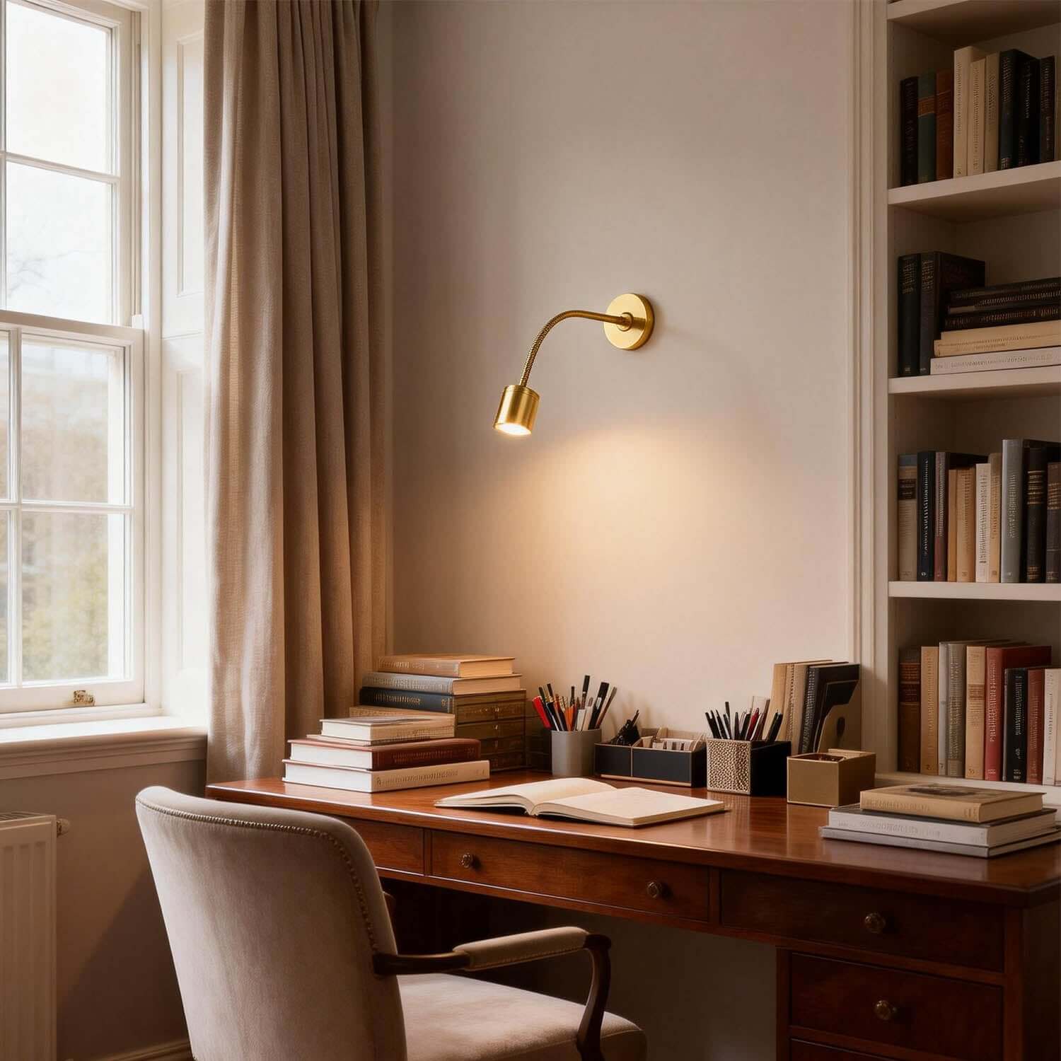 Sleek wall lamp creates a cozy ambiance, perfect for reading or adding style to your space.