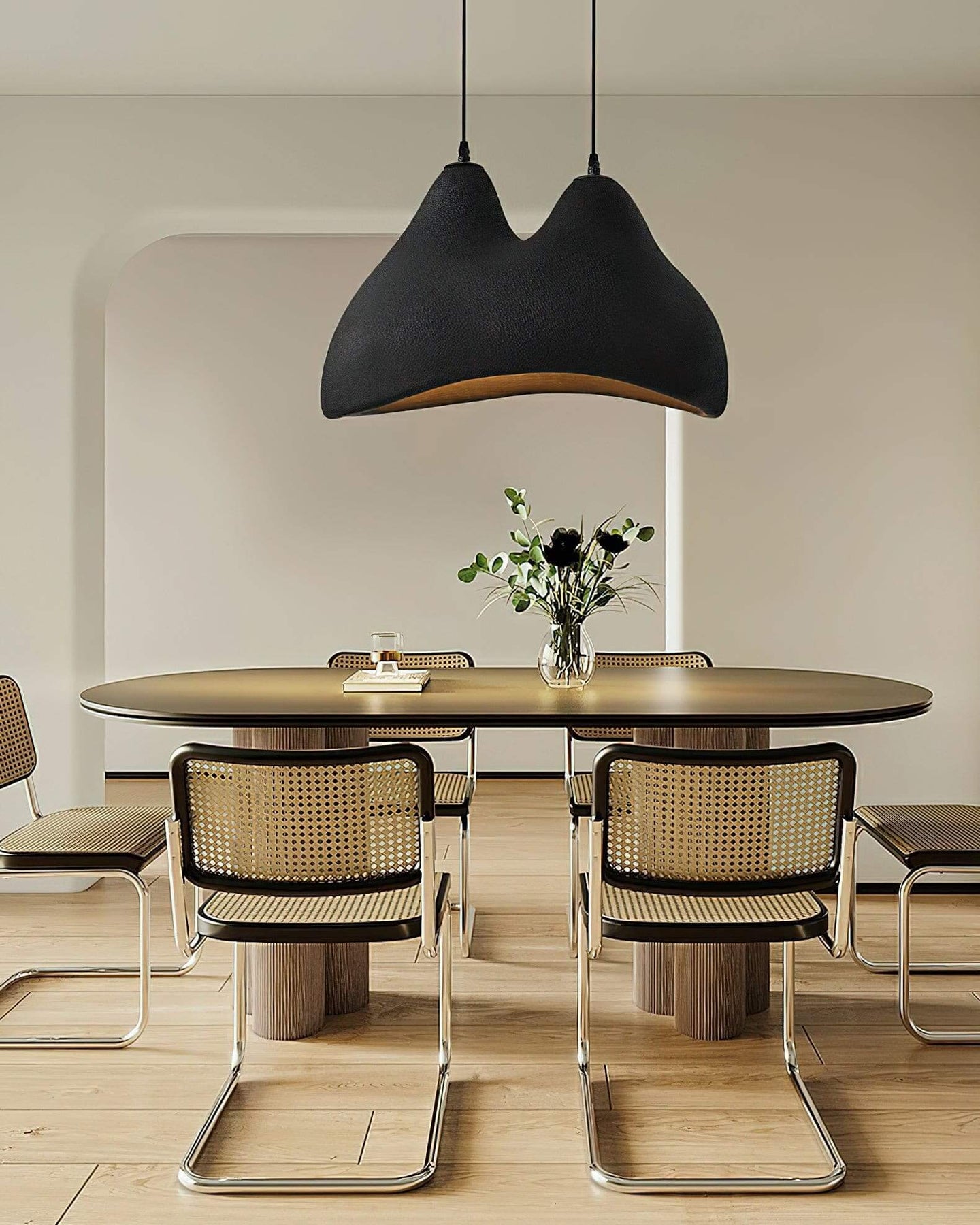 Inspired by nature’s peaks, this resin pendant lamp combines creative Art Deco with minimalist charm. Its curved form and warm illumination set a serene mood, while its versatile style complements dining rooms, bars, or bedrooms. An inviting piece for contemporary living.