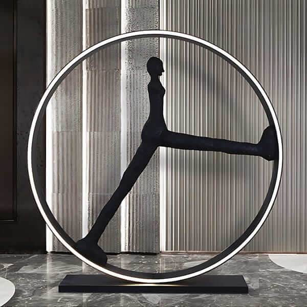 The Quastra Resin Floor Lamp combines Nordic minimalism with postmodern artistry. Its sculptural human silhouette and glowing circular frame create a stunning light luxury statement. Perfect for living rooms, hotel lobbies, or galleries, it elevates any interior with elegance and creativity.