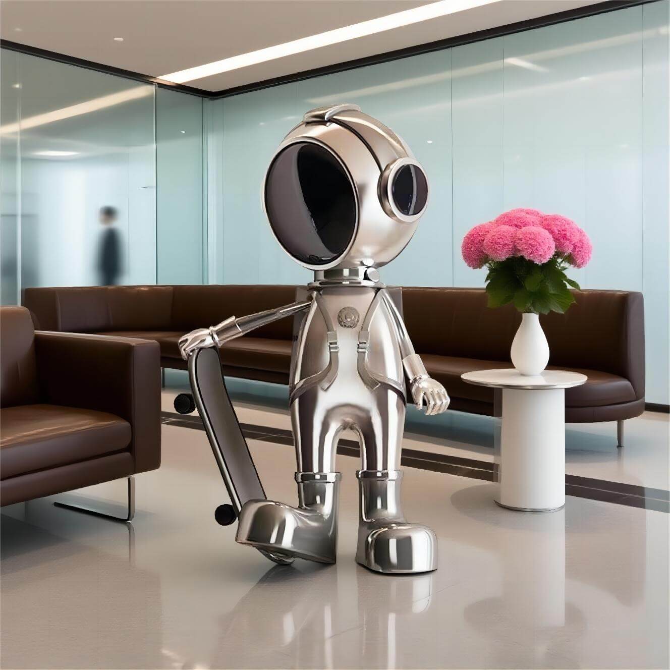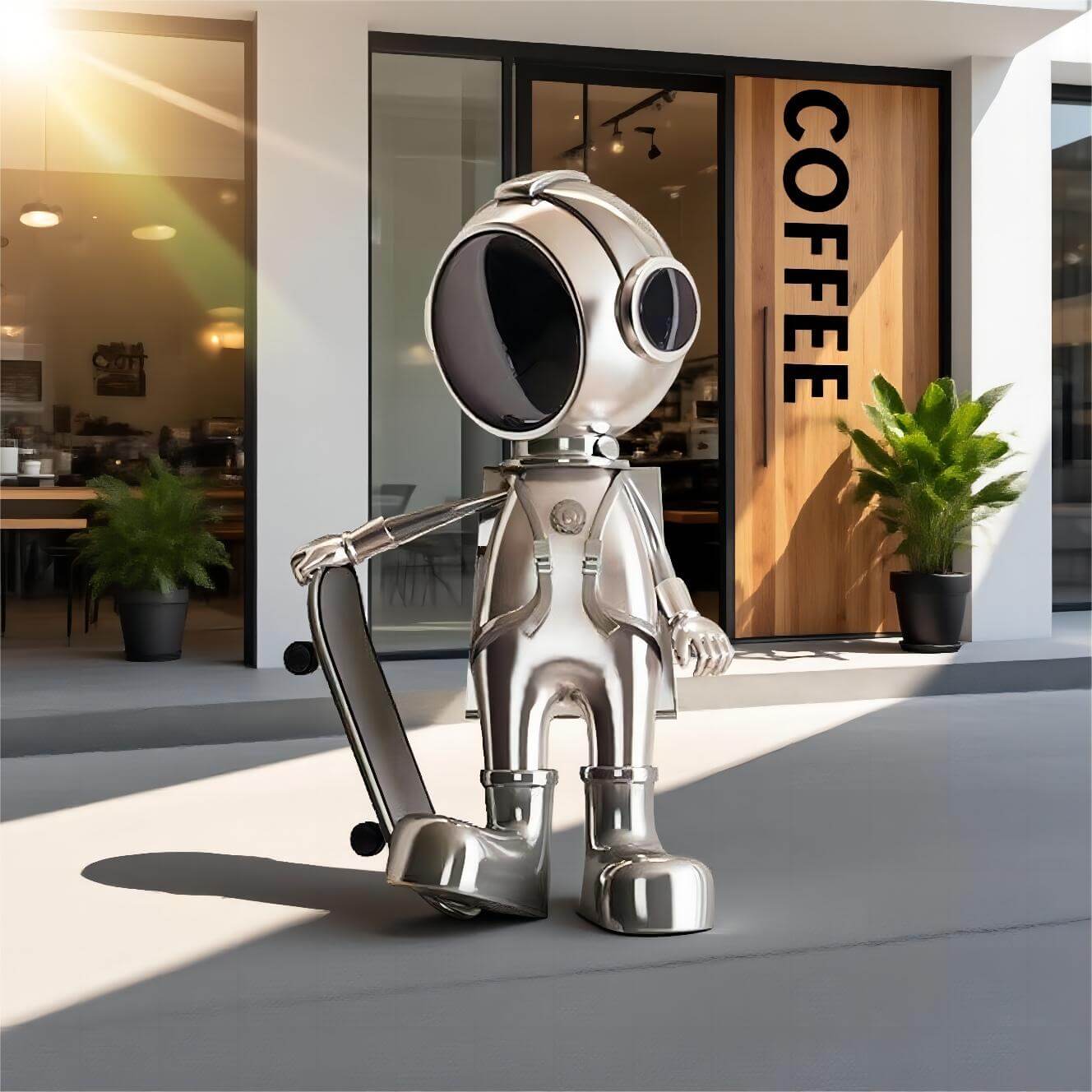 This Skateboarding Astronaut Sculpture combines a space-age aesthetic with a fun twist, featuring an astronaut on a skateboard. It’s a perfect conversation piece for any modern space.