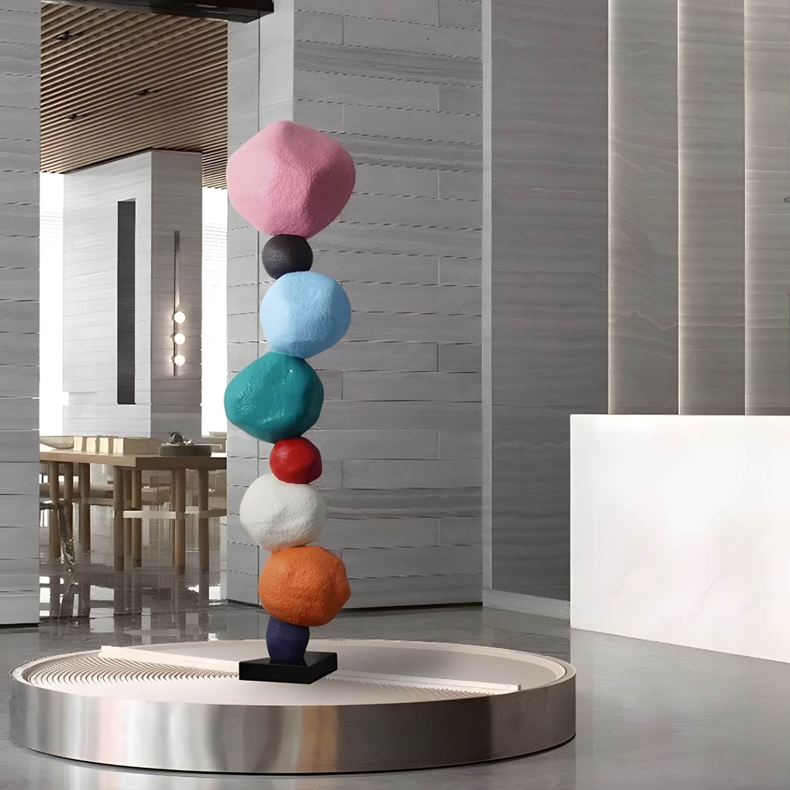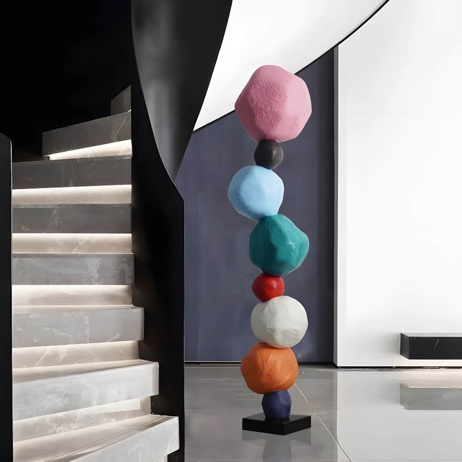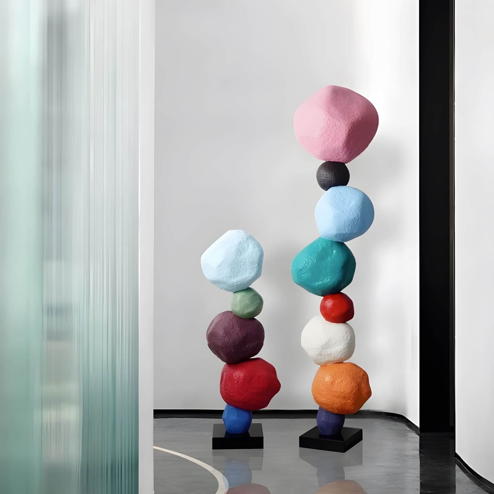 Featuring bold, hand-painted colors and stacked stone shapes, this sculpture brings a playful yet sophisticated Art Deco vibe to any space.