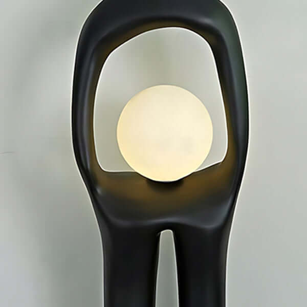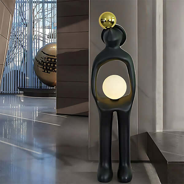 The Voreli Resin Floor Lamp blends sculpture and lighting in a bold, artistic form. Crafted from high-quality resin, its hollow torso cradles a soft glowing orb, creating ambient warmth. The sleek matte finish and golden sphere add a modern luxe feel—perfect for standout interior styling.