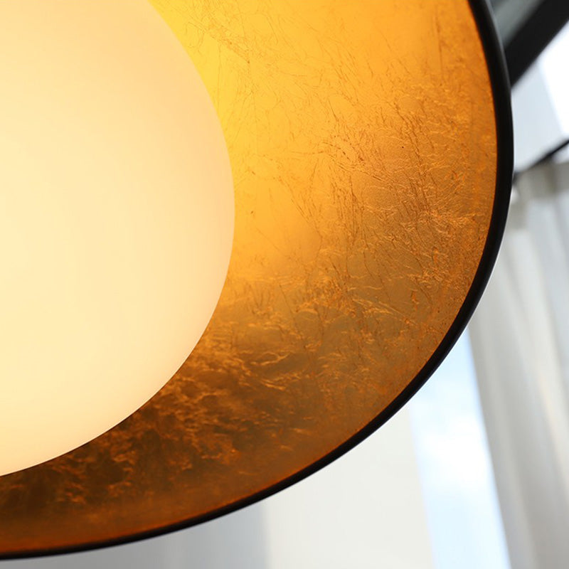 The Voreni ceiling lamp blends modern simplicity with timeless elegance. Its black shade is accented with a gold interior, while the central globe casts a cozy glow. Perfect for an entryway, bedroom, or study, this lamp adds sophistication and warmth to any space.