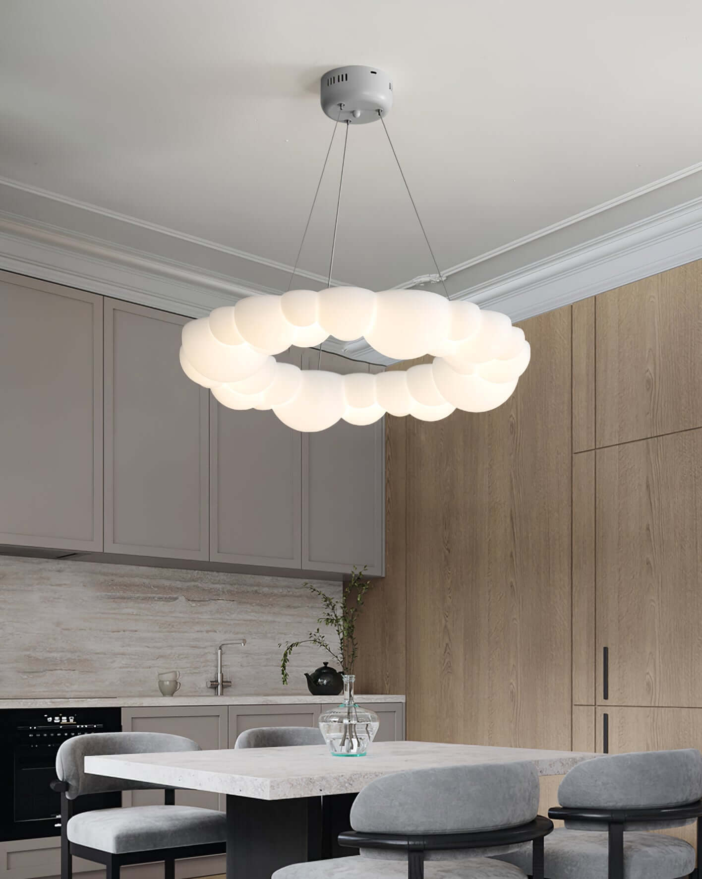 The impact-resistant PE shade provides elegance and calm, like a floating cloud in your home.