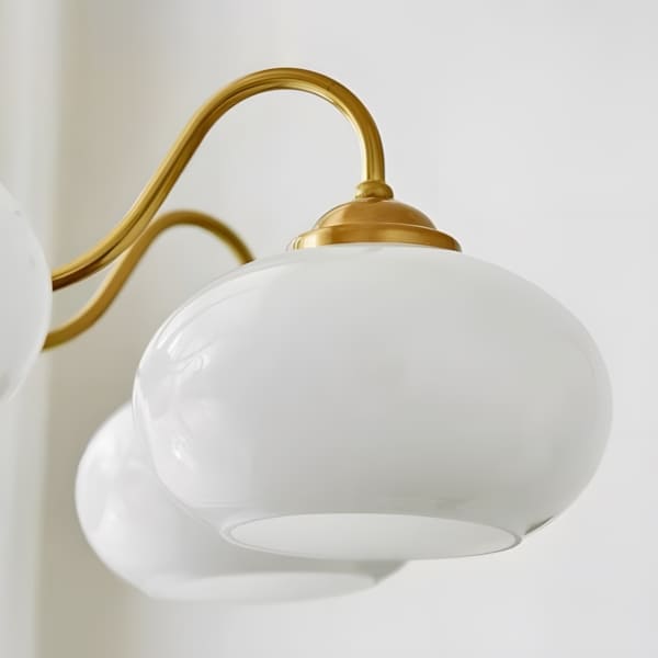 So I really enjoy this light. It looks great in my century home and provides a soft overhead light. The bulbs that came with it are awful, I don't really recommend them to people. Sure they work, but they're a very bright blue-white and remain glowing fir a bit after you've turned the light off. I got small warm bulbs and it really looks great! The globes glow instead of being able to see the bright bulb shape through them.