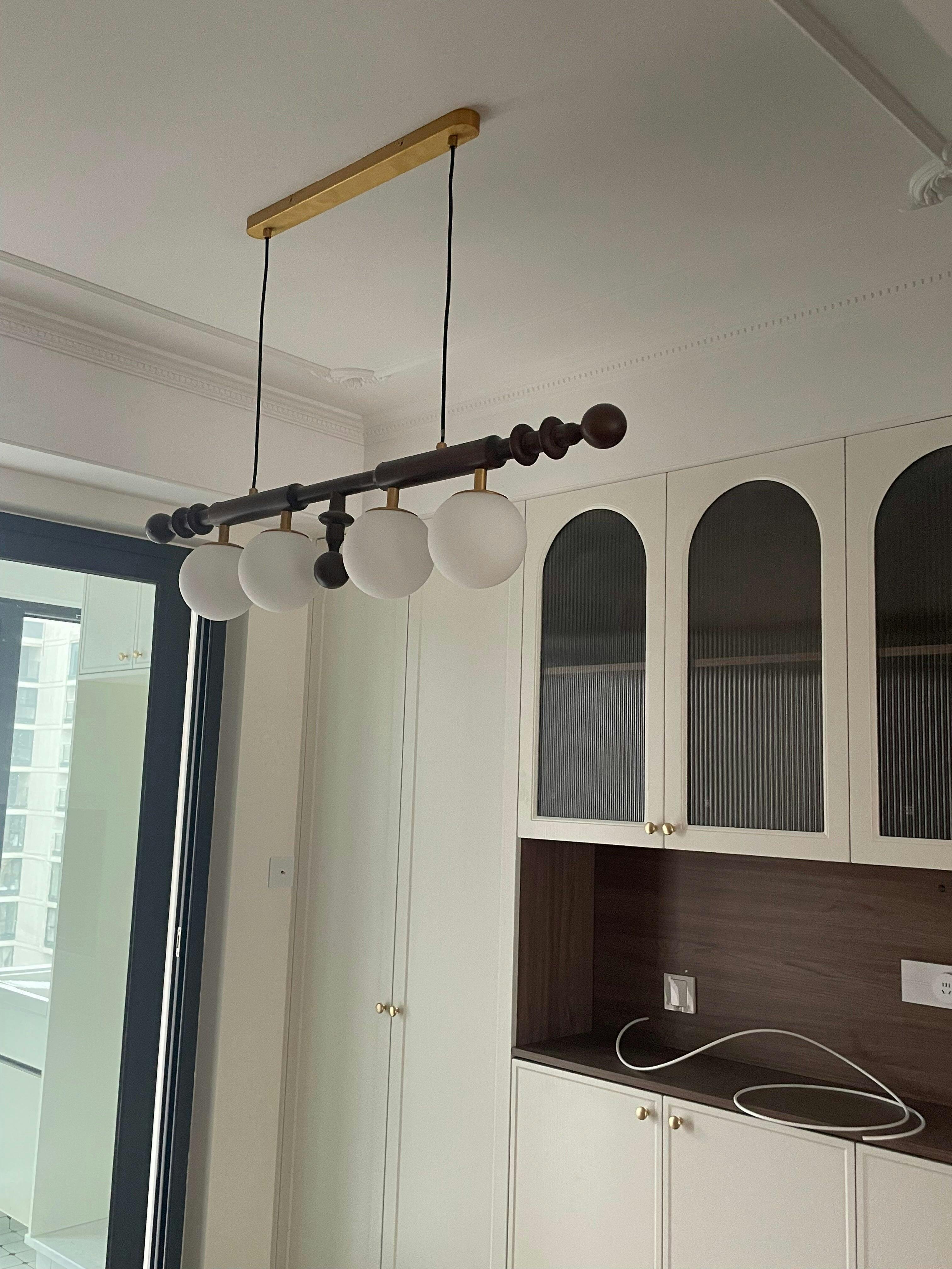 The Roman Column Chandelier elevates sophistication and charm in any home setting. Constructed from walnut wood and glass, it exudes timeless elegance, making it a perfect addition to any dining room. Enhance the ambiance of your space with this beautiful chandelier, creating an inviting atmosphere for gatherings and meals.