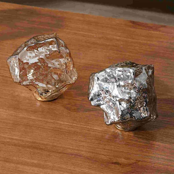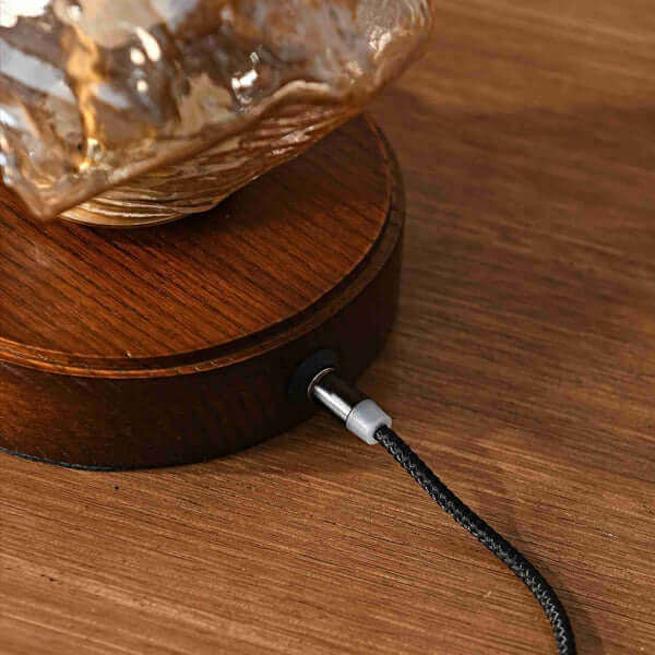 The Ice Stone Rechargeable Table Lamp features mouth-blown glass in a stunning, unique design. Its small opening and frame allow the light source to shine through beautifully, creating a warm, atmospheric glow. Perfect for your bedroom or study, it adds both style and ambiance to any space.