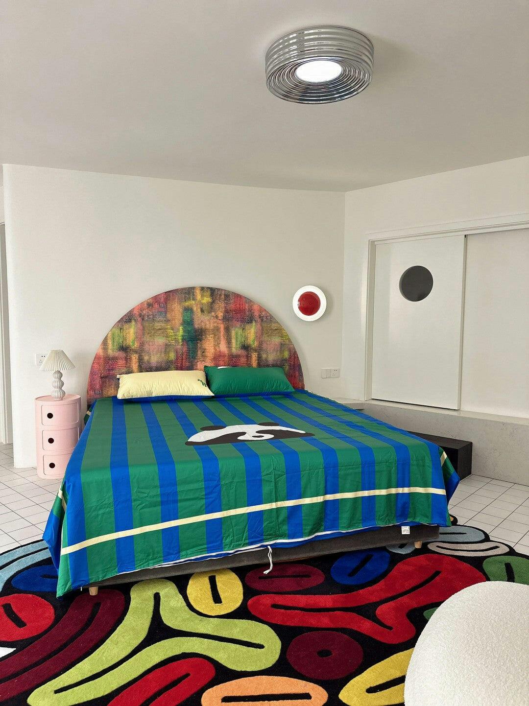 This lamp is very beautiful, the circle design is very nice, it really adds the finishing touch to my bedroom!