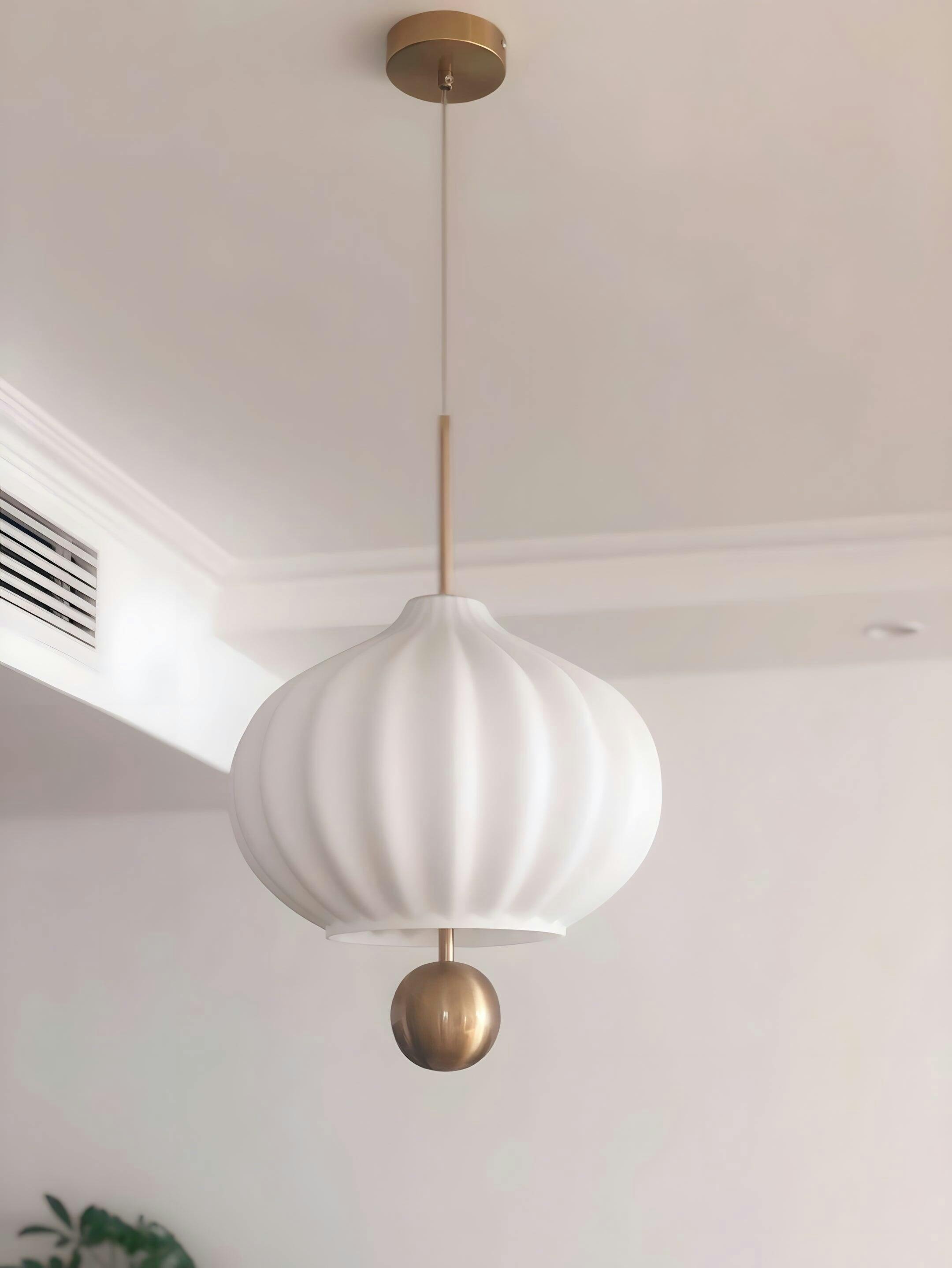 The Lilli Pendant Lamp combines nature-inspired beauty with elegance. Featuring an opal diffuser made from two layers of mouth-blown glass, it creates a soft, diffused glow. The satin brass structure adds sophistication. Designed in 2019, this lamp brings balanced harmony to any space.