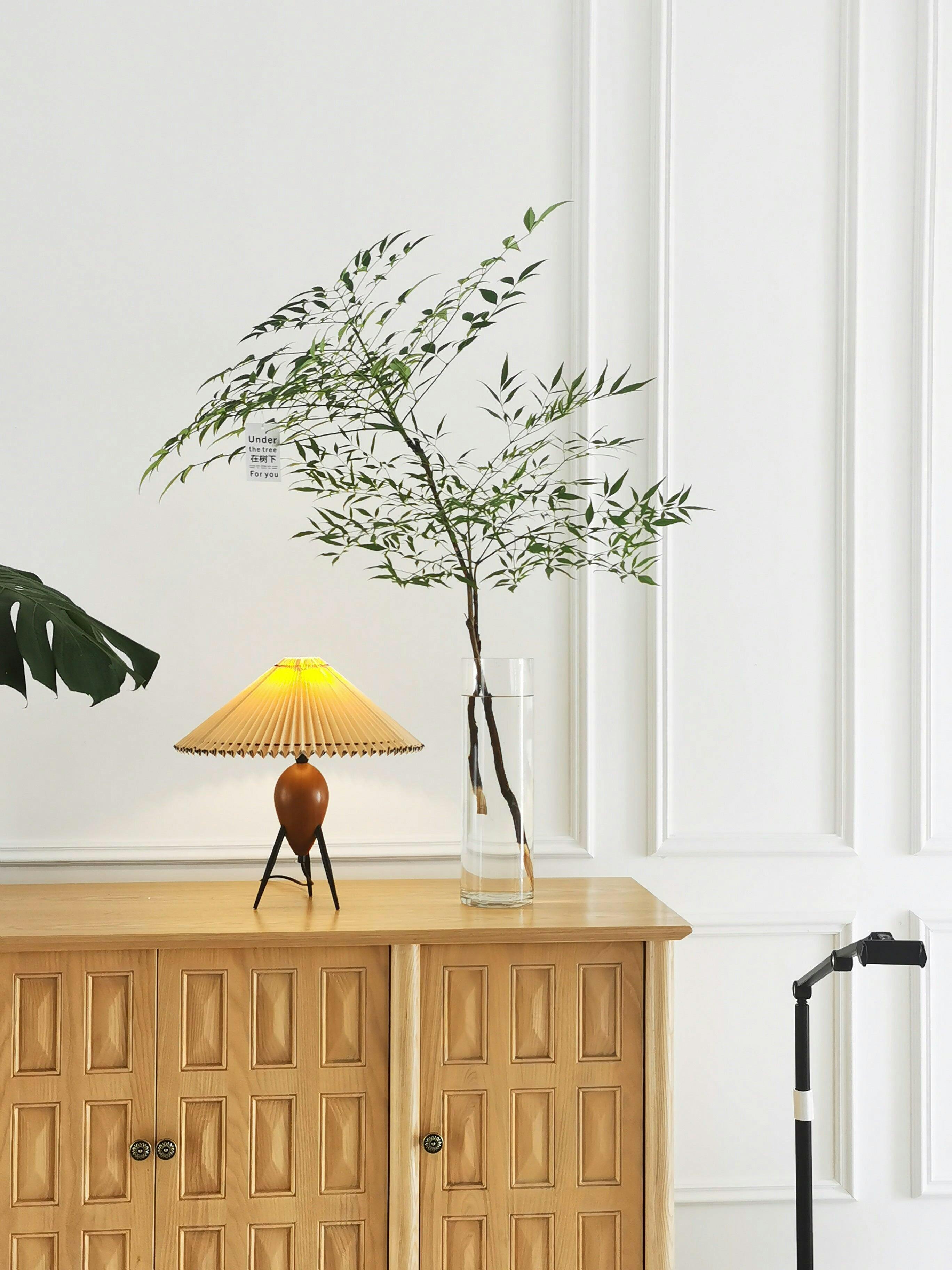 Makie Table Lamp with wood base and pleated shade, perfect for console tables and adding a modern touch to your decor.