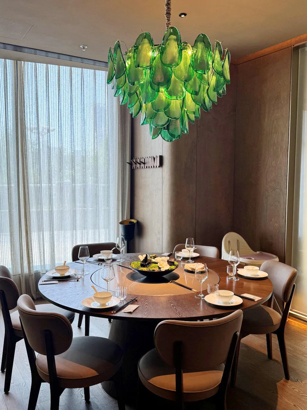 Each handcrafted glass piece showcases exceptional artistry, adding a unique, personal touch to the design.