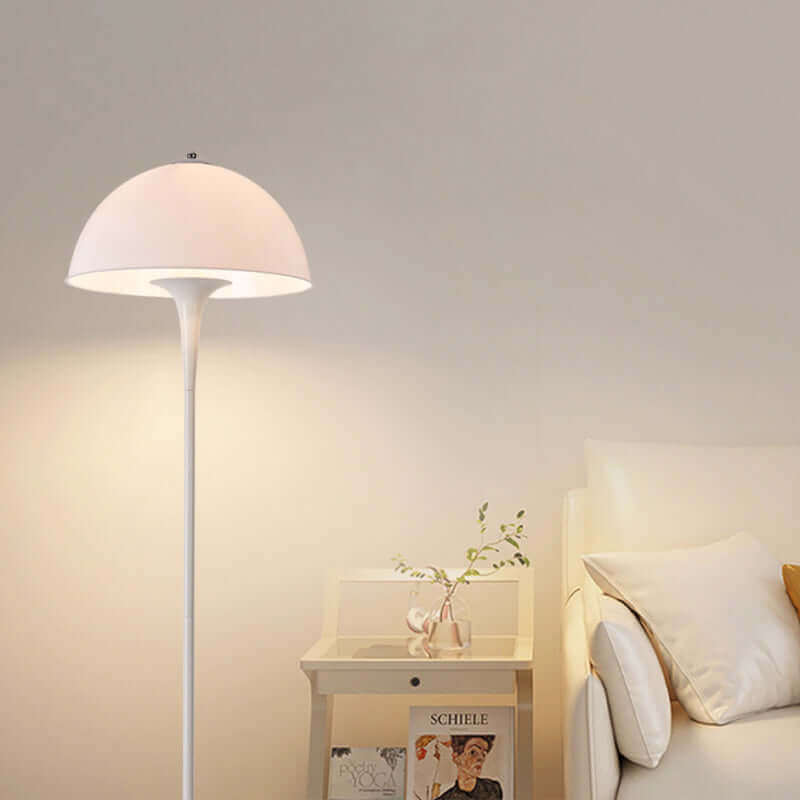 The Panthella Floor Lamp combines mid-century modern design with space-inspired elegance. Featuring a sleek, opaque dome shade and a high-shine circular base, it adds timeless sophistication to any room, elevating your space with its contemporary flair.