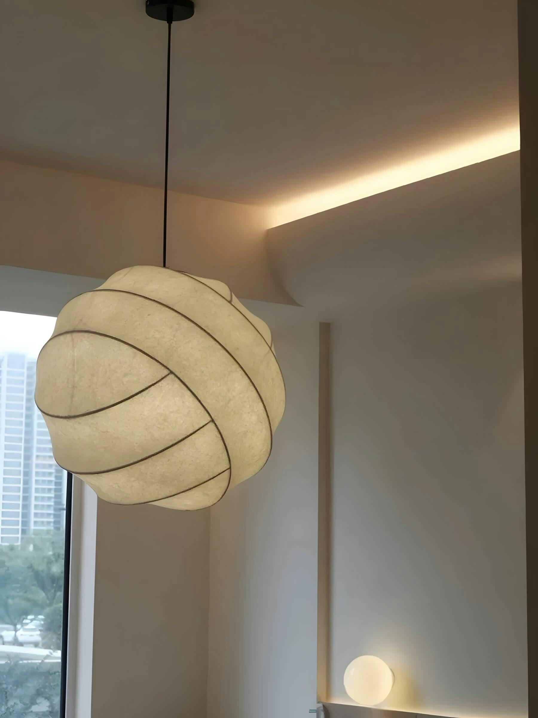 Illuminate your space with the Turner Pendant Light, crafted from luxurious natural silk cocoon material, offering a soft, warm glow and exceptional texture.