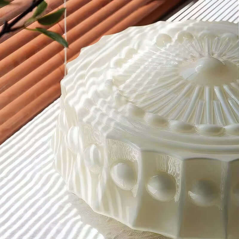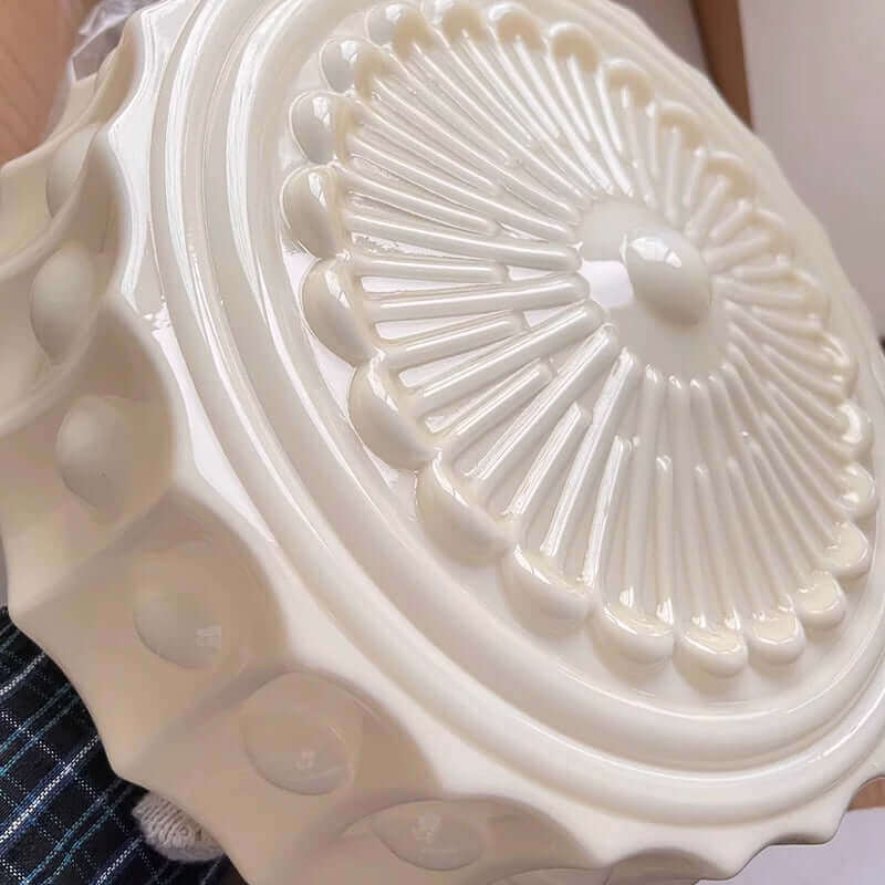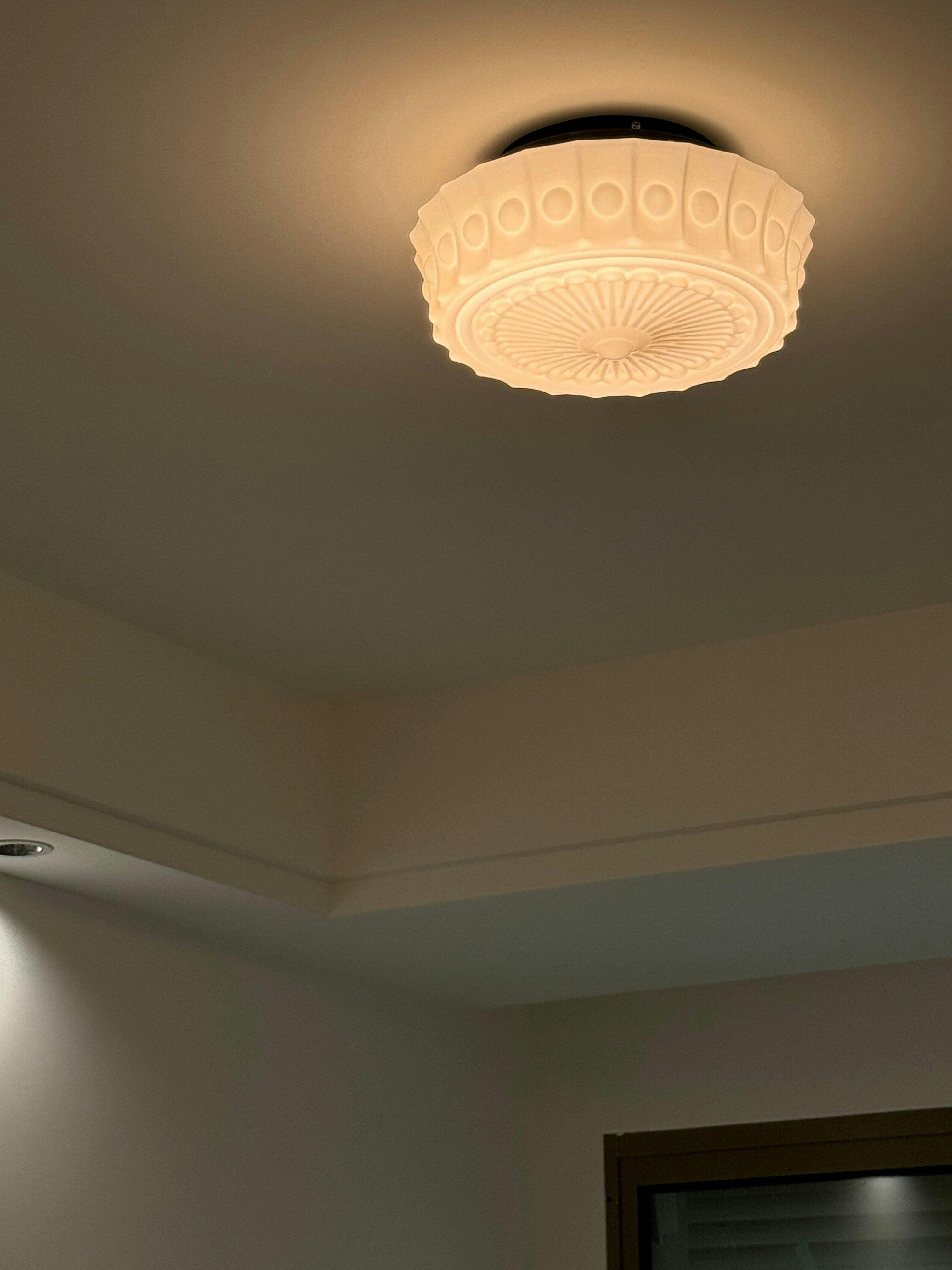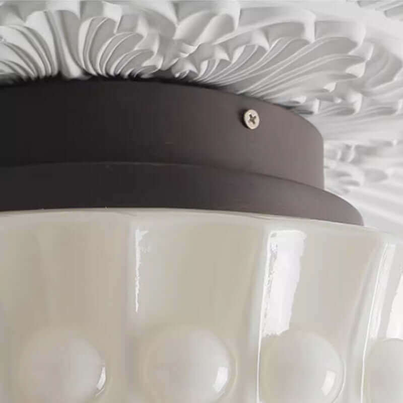 Bring vintage elegance into your home with the Vintage Round Ceiling Light. Its off-white milk glass shade with raised patterns creates a soft, ambient glow. This semi-flush mount fixture is perfect for bedrooms, sitting rooms, or hallways with an art deco flair.