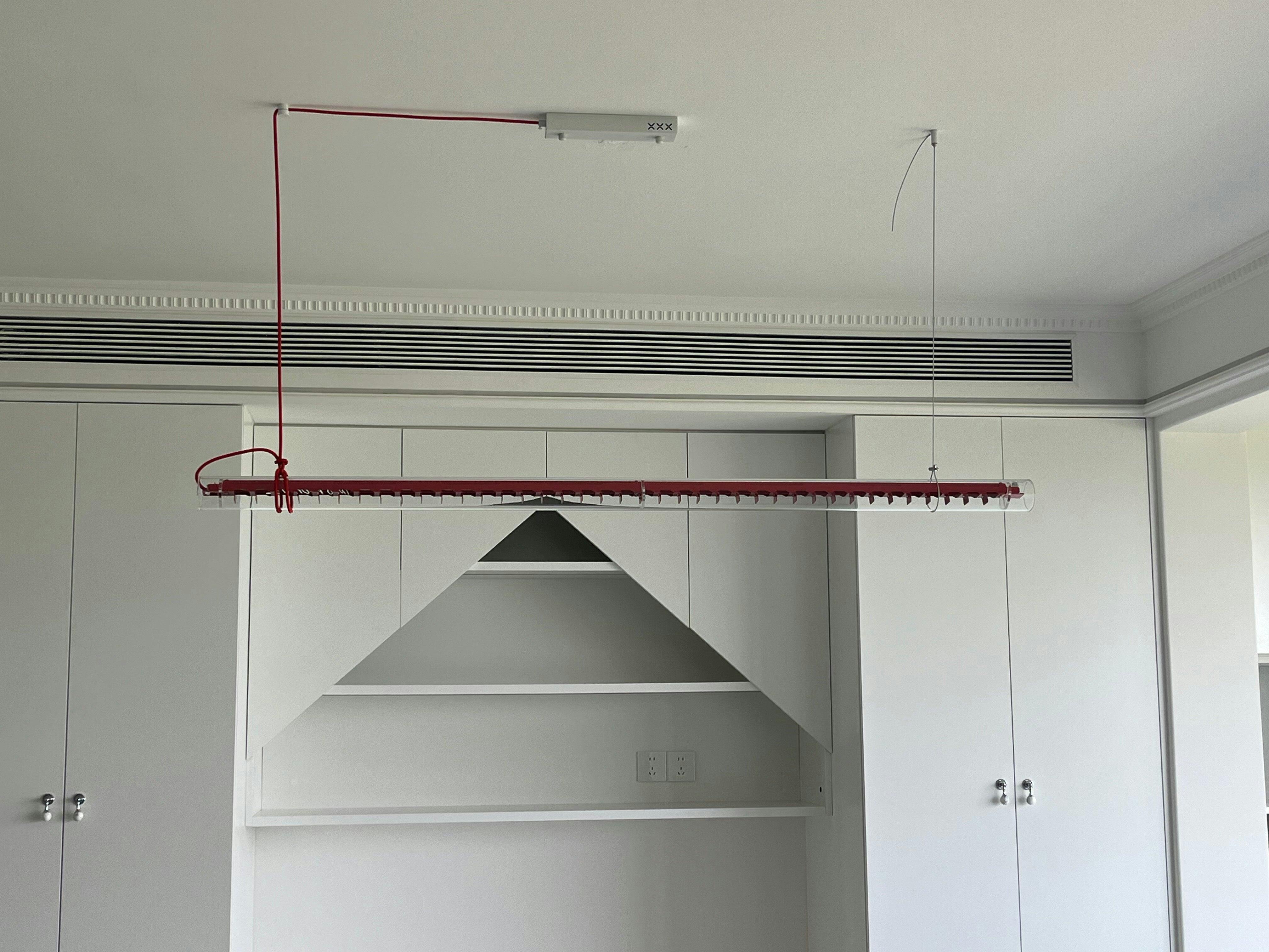 The vibrant red fabric cord adds a playful yet bold contrast—instantly elevating any space with a pop of personality.